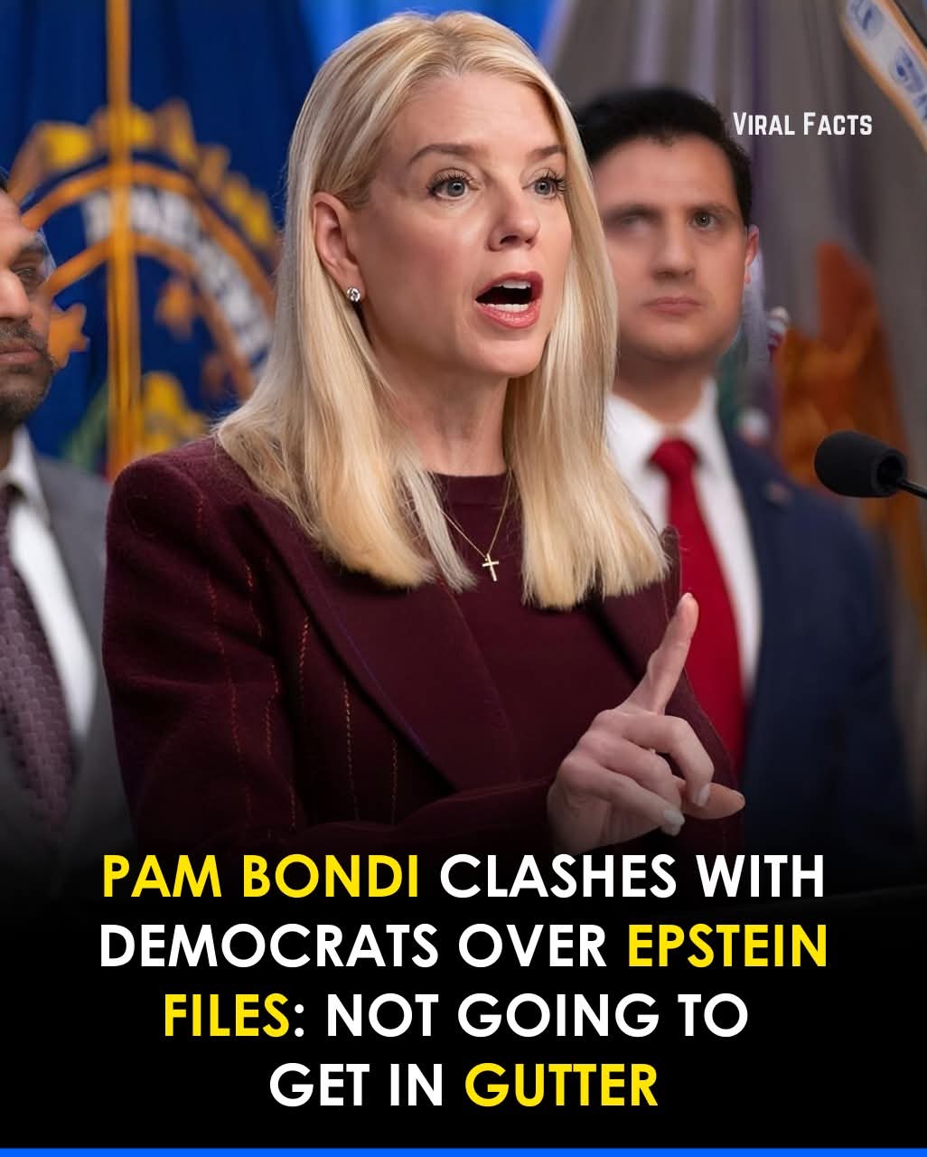 Pam Bondi sharply pushed back against Democratic lawmakers during a tense exchange over the handling of the Epstein files, making it clear she would not “get in the gutter” over political attacks.